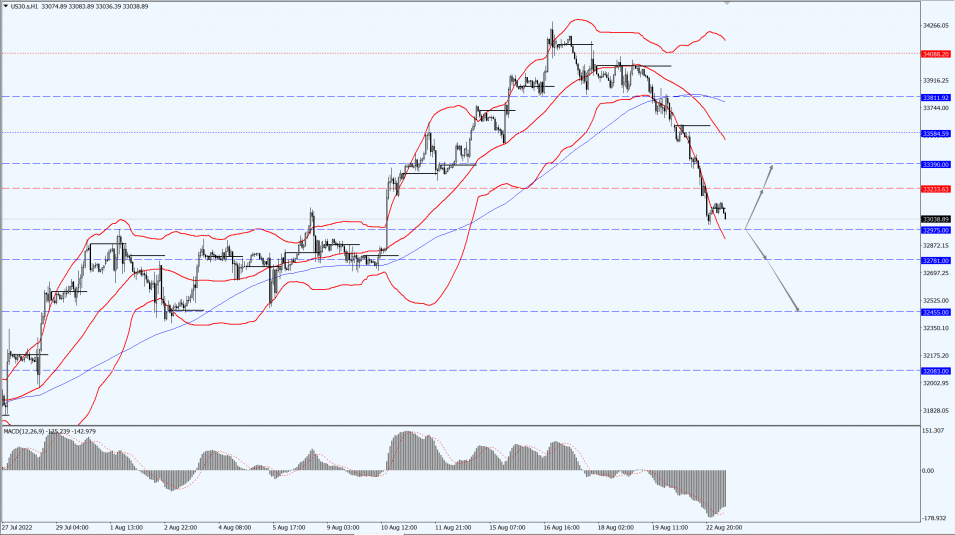The Dow focuses on the 32975-line today. If the Dow runs steadily above the 32975-line, it will pay attention to the suppression strength of the 33233 and 33390 positions. If the Dow runs steadily below the 32975-line, it will pay attention to the support strength of the 32781 and 32455 positions.