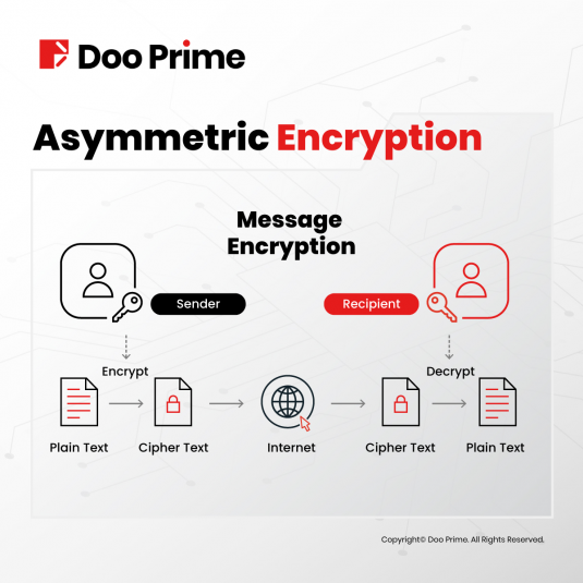 Doo Prime integrates another technique – namely, asymmetric encryption with SSL encryption technology. Asymmetric encryption consists of more keys – a “public key” and a corresponding “private key” as opposed to conventional symmetric encryption. The public key is used to encrypt outgoing information, while the private key is used to decrypt the content of the information. The data encrypted with the recipient’s public key can only be decrypted with the corresponding private key.