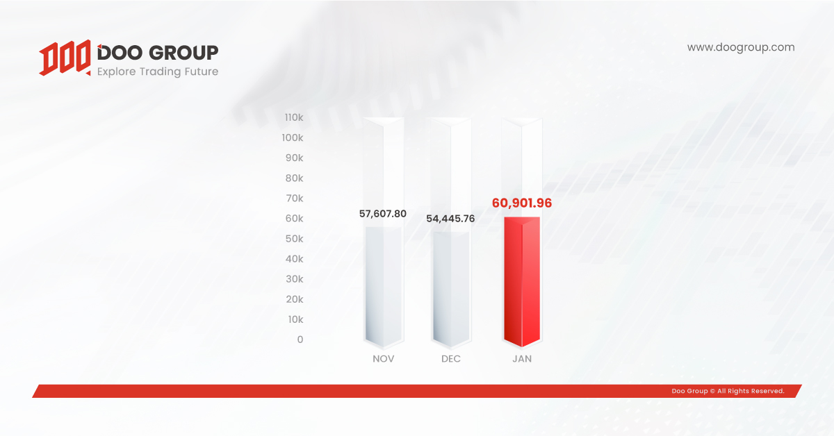 According to the report, Doo Prime’s total trading volume in January 2023 sits at USD60.90 billion, an increase of 12.91% from the previous month. Apart from that, the average daily volume (ADV) in January was USD1.96 billion, an increase of approximately 12.91% from December last year.