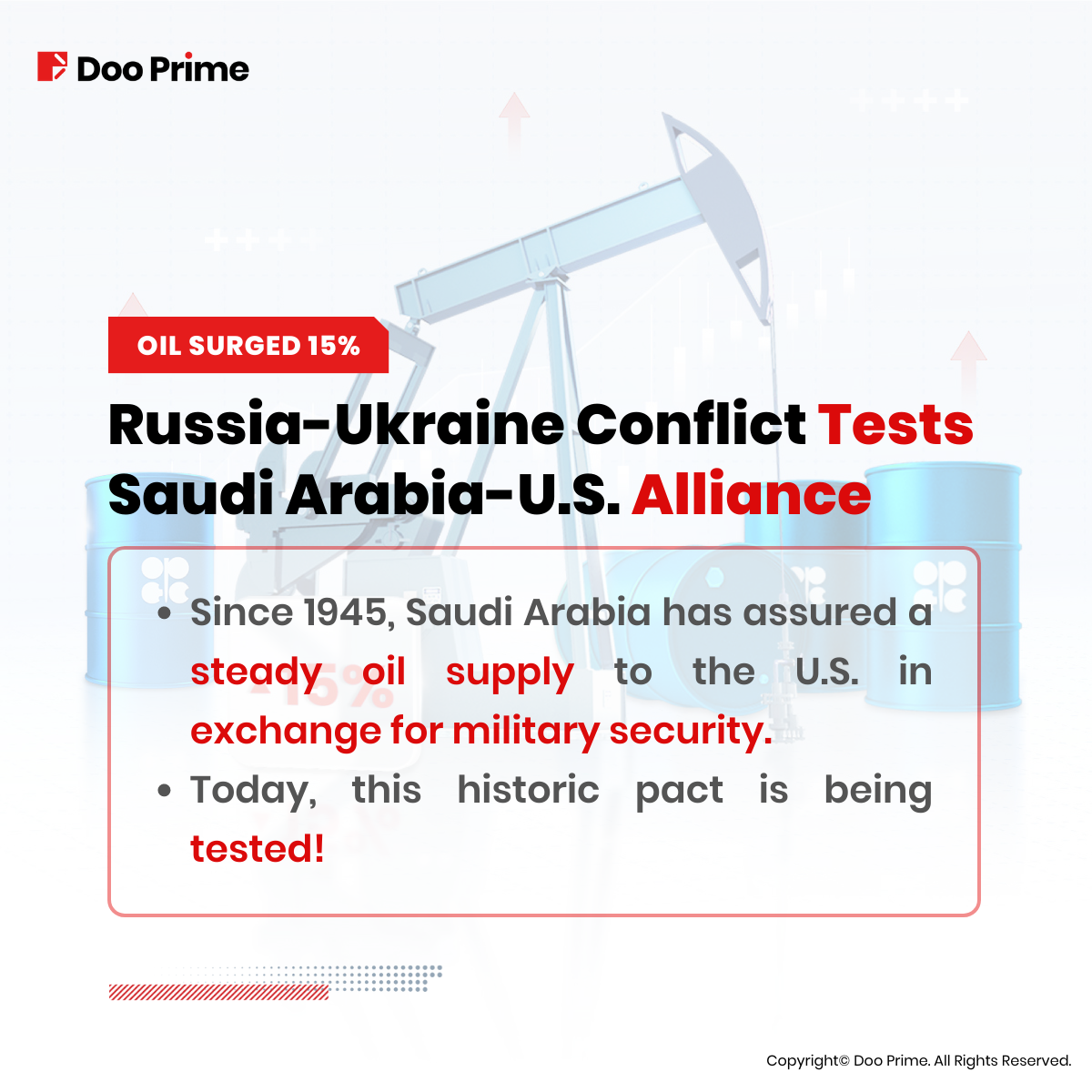 The Russia-Ukraine conflict shook the foundation of the global economy and had an immense impact on key geopolitical ties. For eighty years, Saudi Arabia had a bargain with the U.S., promising a reliable supply of oil to the Americans in exchange for U.S. security against any potential threats. Today, this nearly century-old alliance is facing an extraordinary test.