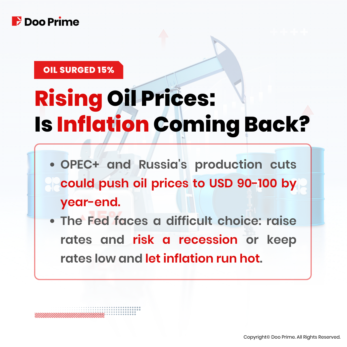 • However, oil prices could also fall if higher interest rates hinder global economic growth or if OPEC+ decides to increase oil production.