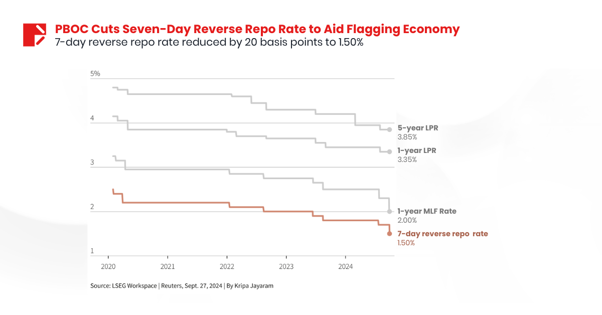 China’s economic stimulus package is a response to the significant pressures facing the world’s second-largest economy, including deflation, real estate debt, and unemployment. On September 23, the People’s Bank of China (PBOC) announced a series of actions, injecting 234.6 billion yuan (33.29 billion USD) into the banking system through open market operations.