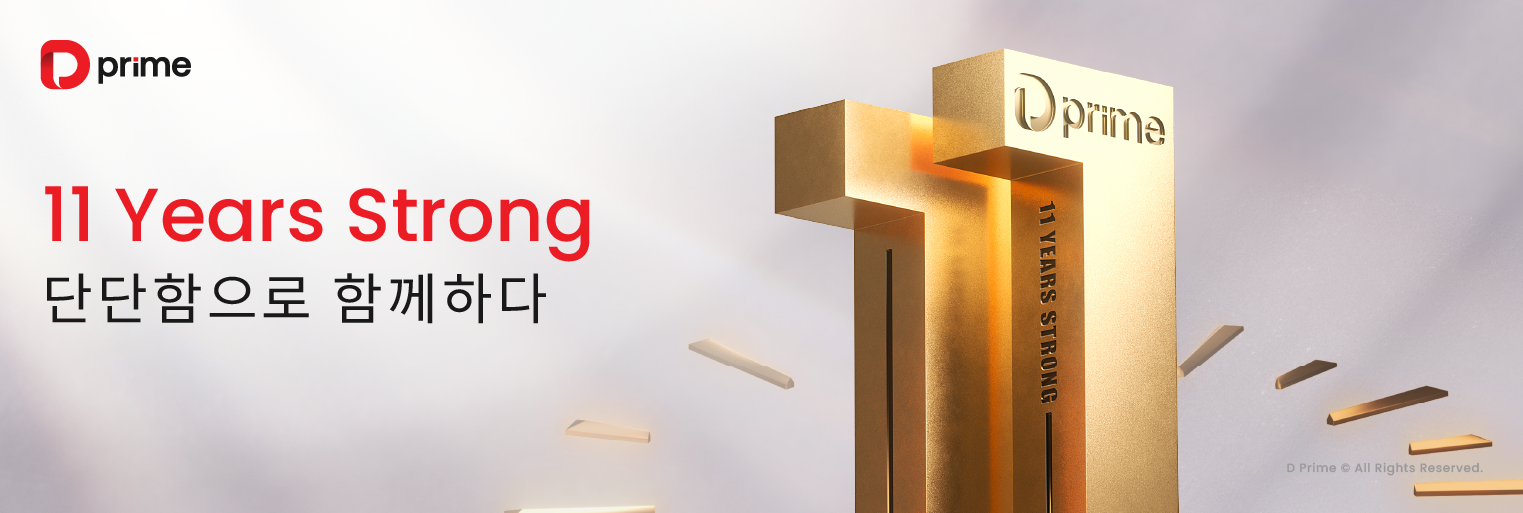 모든 거래자, 파트너, 그리고 함께해주신 모든 분들께 감사드립니다. 여러분의 신뢰와 함께함은 저희가 앞으로 나아가는 가장 큰 동력입니다. 11년간의 동행에 보답하고자, D Prime은 새로운 11주년 기념 특별 이벤트를 선보입니다. 다양한 방식과 풍성한 혜택으로 여러분의 거래 여정을 한층 더 특별하게 만들어드립니다.