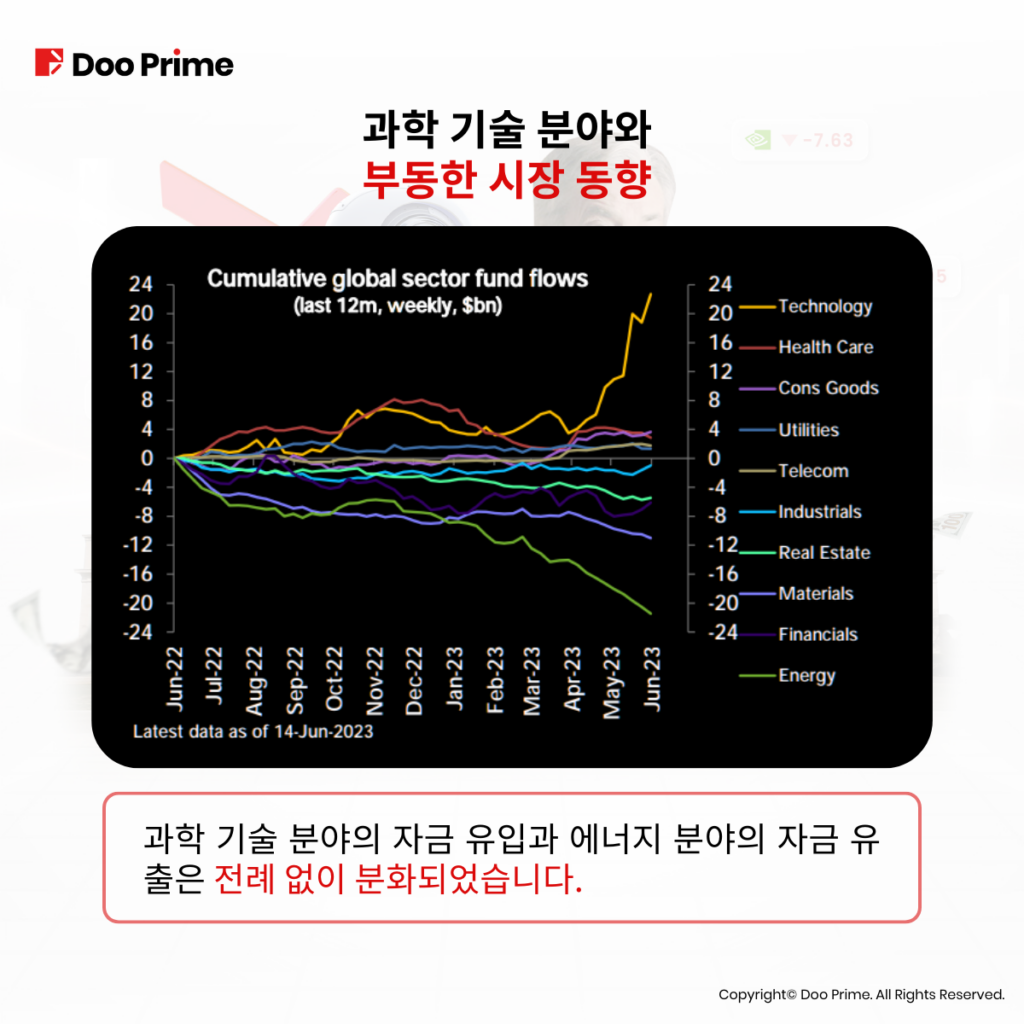 금리가 사상 가장 빠른 속도로 상승하고 인플레이션율이 40여 년 만에 최고치로 치솟고 있지만 현재 시장 정서 는 여전히 매우 낙관적입니다. 미국 은행업의 시스템 리스크는 여전히 존재해 경기 침체에 대한 시장의 우려를 증폭시켰지만, 투자자들은 인공지능(AI) 개념주에 열광하여 잠재적 리스크를 과소평가했습니다. 일부 투자자들은 심지어 다음 불마켓이 시작되었다고 추측하기도 하였습니다.