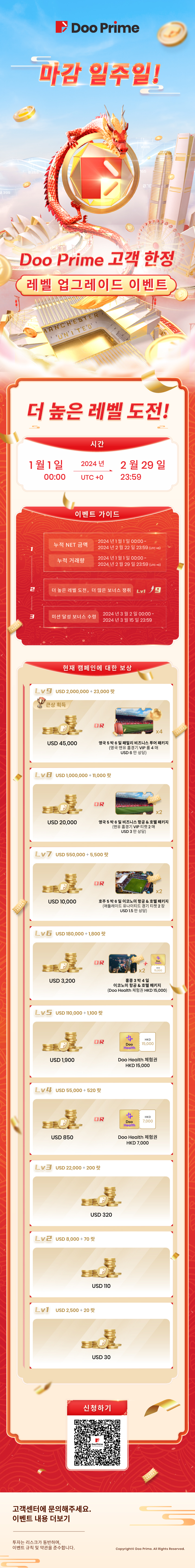 새해에는 Doo Prime 많은 투자자들에게 행운이 가득하고, 사업이 번창하고, 거래가 번창하고, 수확이 가득하길 바랍니다!지금 바로 이벤트에 참여하세요, 복을 받으시고, 당신의 용띠 해 거래의 새로운 길을 열어주세요!