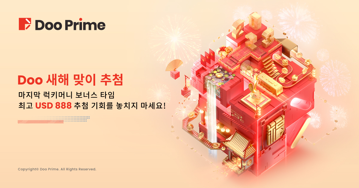 Doo 새해 맞이 추첨: 마지막 럭키머니 보너스 타임, 최고 USD 888 추첨 기회를 놓치지 마세요!