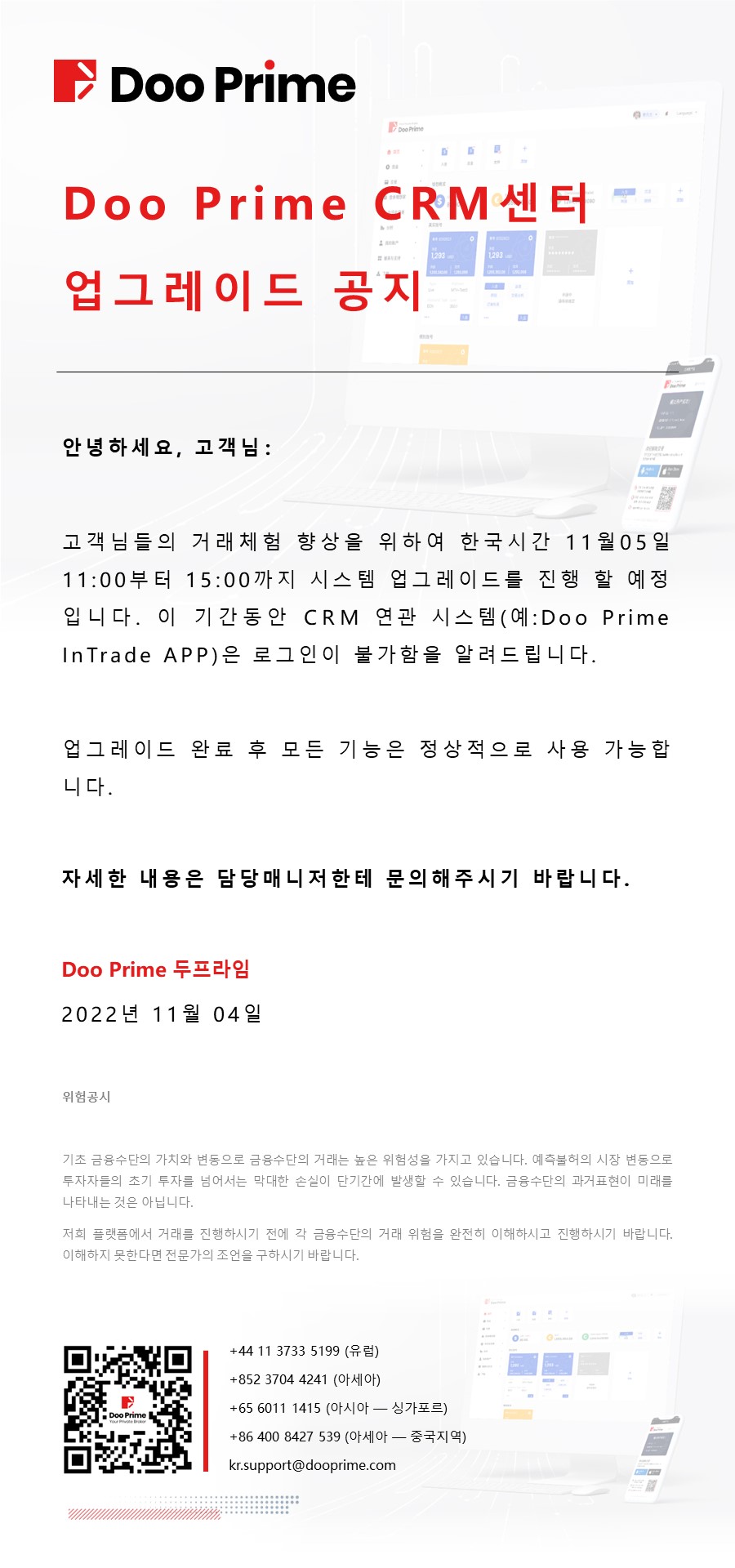 Doo Prime CRM센터 시스템 고장 성명