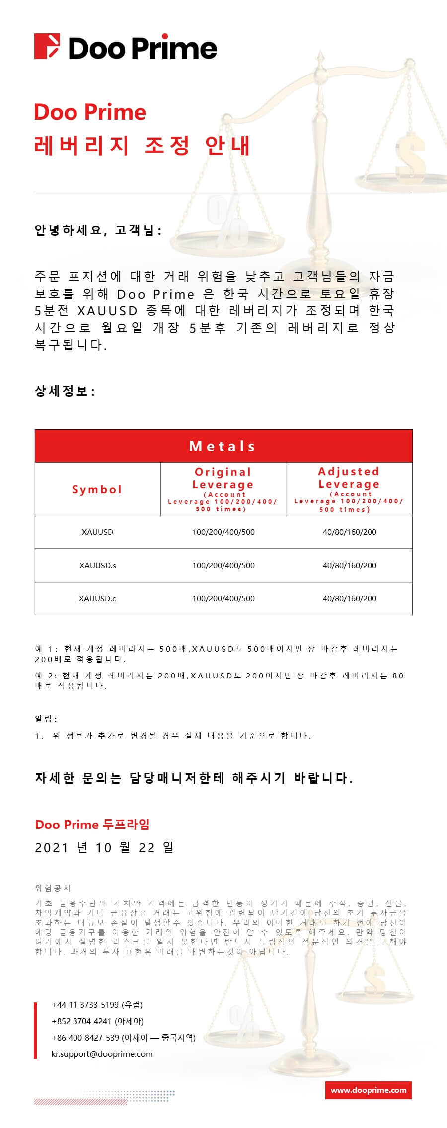 Doo Prime 레버리지 조정 안내