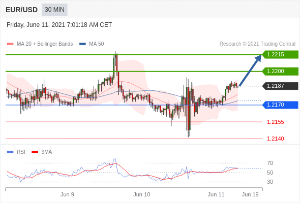 Long positions above 1.2170 with targets at 1.2200 & 1.2215 in extension.