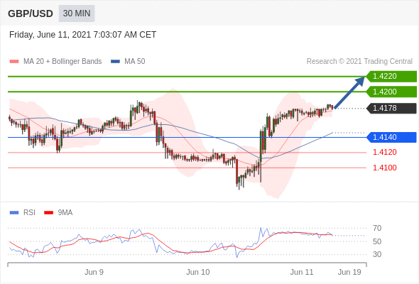 Long positions above 1.4140 with targets at 1.4200 & 1.4220 in extension.