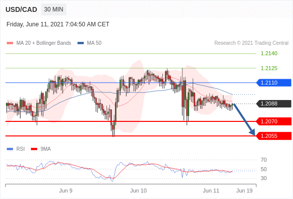 Short positions below 1.2110 with targets at 1.2070 & 1.2055 in extension.