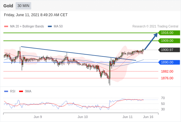 Long positions above 1890.00 with targets at 1909.00 & 1916.00 in extension.