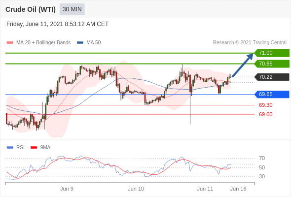 Long positions above 69.65 with targets at 70.65 & 71.00 in extension.