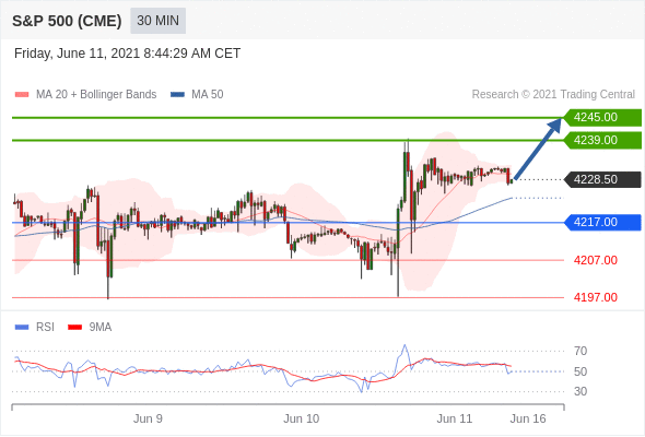 Long positions above 4217.00 with targets at 4239.00 & 4245.00 in extension.