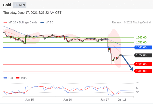 Short positions below 1840.00 with targets at 1803.00 & 1788.00 in extension.