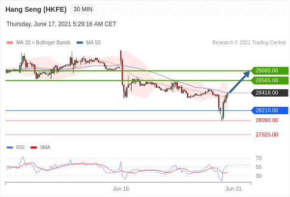 Long positions above 28210.00 with targets at 28565.00 & 28680.00 in extension.