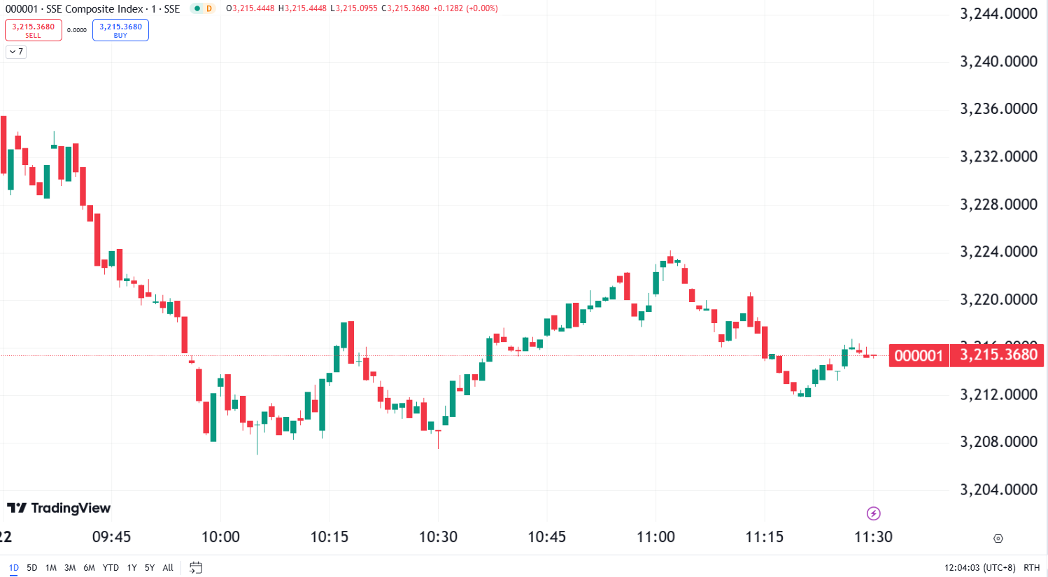 - Shanghai Composite: -0.84%, closing at 3,215.37.