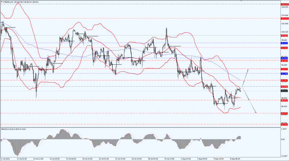 Oil prices focus on the 90.44-line today. If the oil price runs above the 90.44-line, then focus on the suppression strength of the two positions of 91.54 and 93.57. If the oil price runs below the 90.44-line, then pay attention to the support strength of the two positions of 88.02 and 85.72.