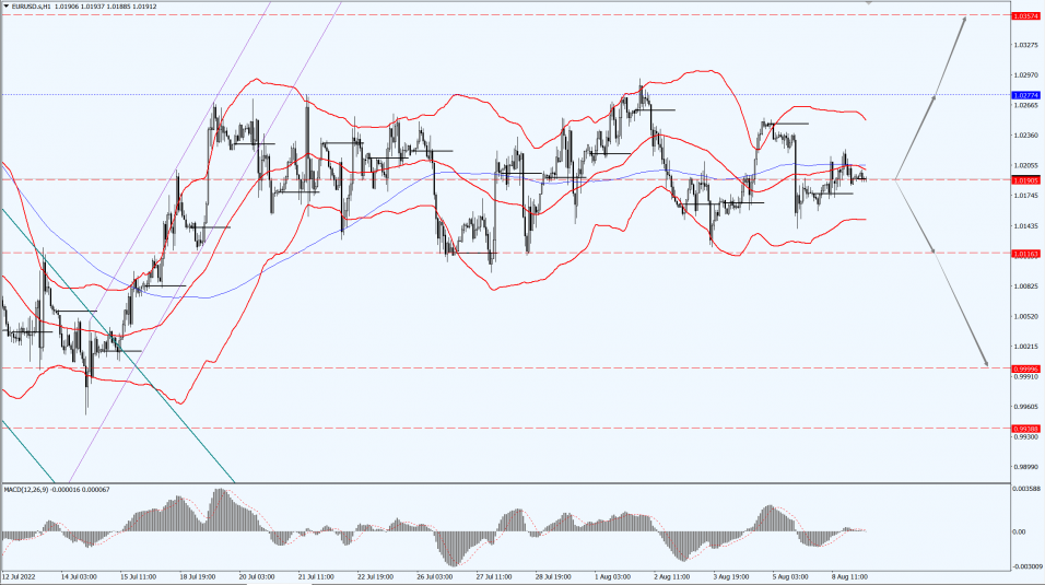 EUR/USD fell sharply last week, closing up 0.13% at 1.0190 on Monday, 8th August 2022.