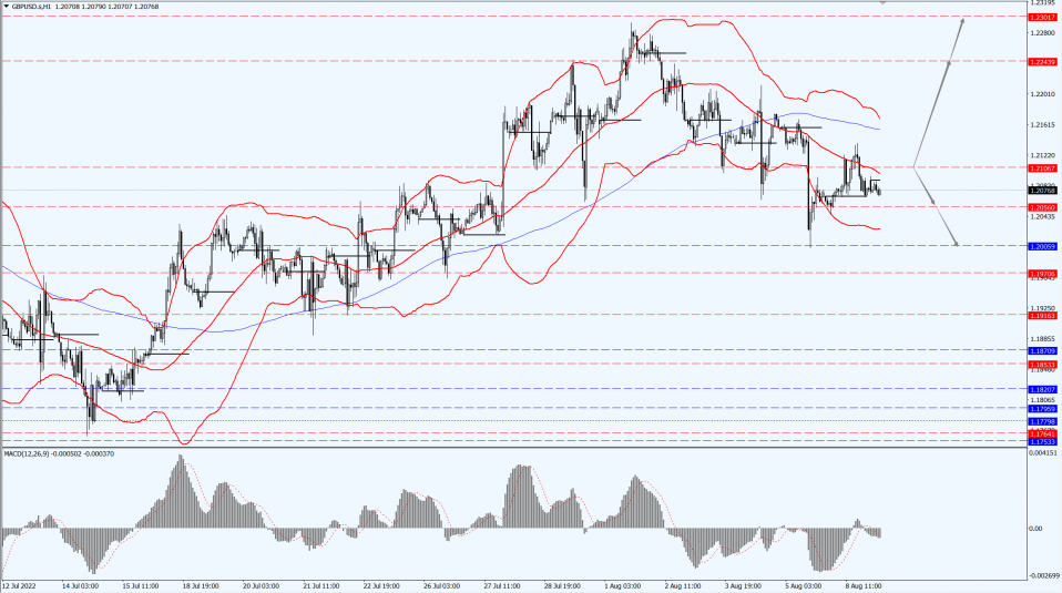GBP/USD fell on Monday, 8th August 2022, and finally closed up 0.02% at 1.2075.