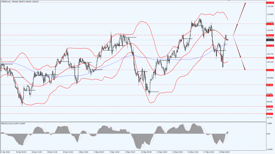 Oil prices focus on the 109.62-line today. If the oil price runs below the 109.62-line, then focus on the suppression strength of the two positions of 105.01 and 102.52. If the oil price runs above the 109.62-line, then pay attention to the support strength of the two positions of 111.95 and 116.30.