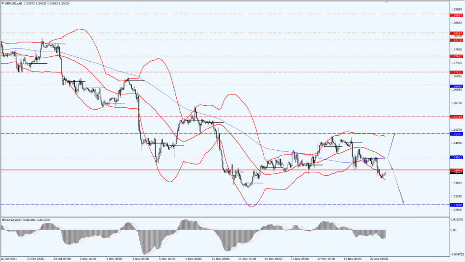 The pound today is mainly focused on the 1.3450-line. If the pound runs below the 1.3450-line, then pay attention to the 1.3302-line of support. If the pound breaks through the 1.3450-line, then pay attention to the 1.3522-line of suppression.
