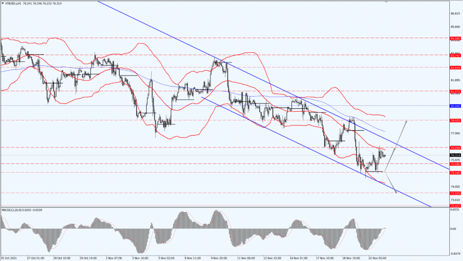 Today, oil prices are still paying attention to the 75.04-line. If oil prices run above the 75.04-line, then pay attention to the suppression of the 76.89 and 78.92 positions in turn. If the oil price drops below 75.04, it will open up further downside space. At that time, pay attention to the support of the 73.52-line.
