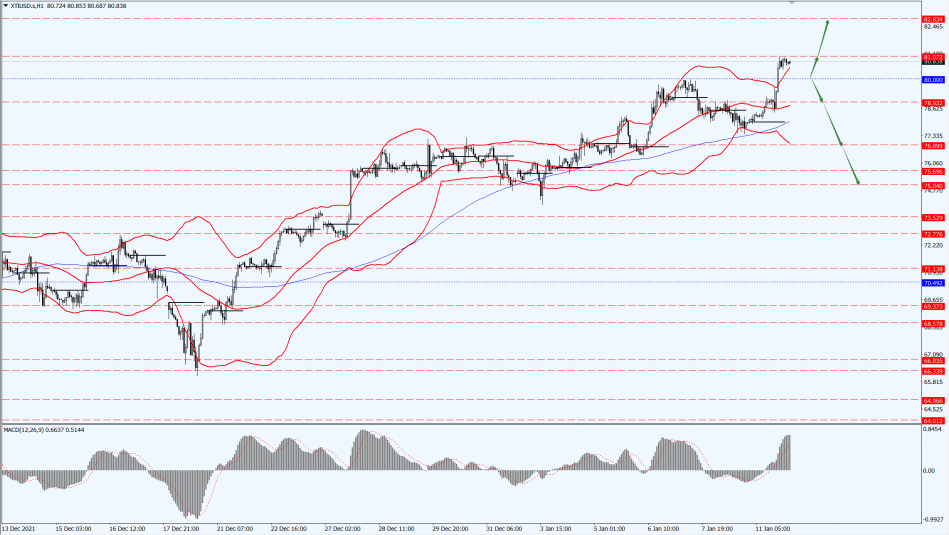Oil prices focus on the 80-line today. If the oil price runs below the 80-line, then focus on the support at 76.89 and 75.69. If the oil price breaks above the 80-line, then pay attention to the suppression of the 81.07-line.