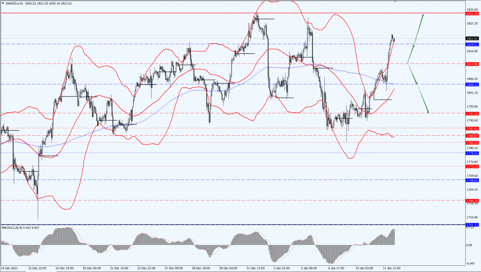 Gold prices rose by more than 1% yesterday, 11th January 2022, refreshing the high since 5th January 2022 to $1823.31 per ounce. The dollar fell after Fed Chairman Jerome Powell testified before Congress and did not make any unexpected comments on tightening monetary policy, and the U.S. bond yields retreated to provide support.