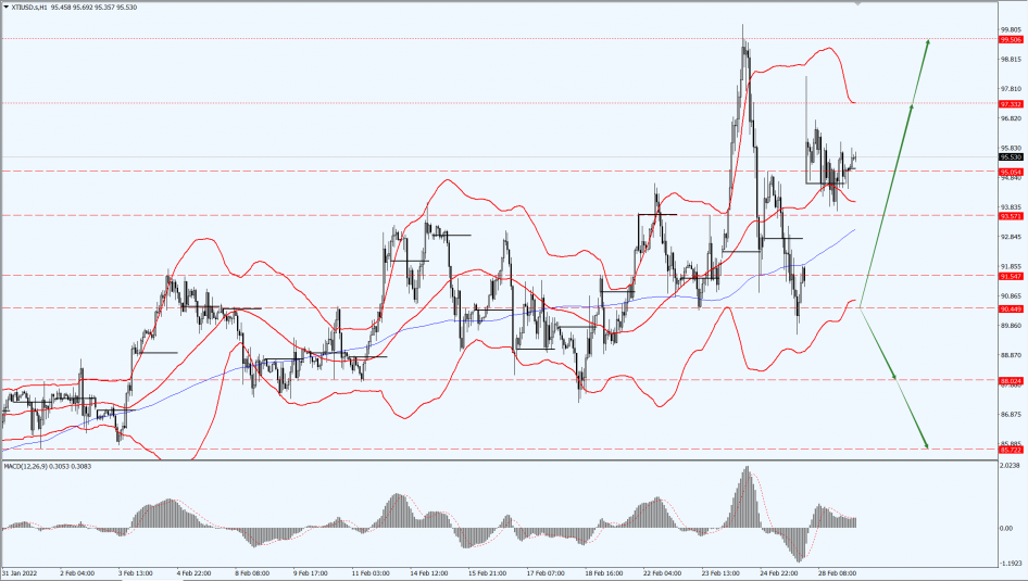 Oil prices focus on the 91.54-line today. If the oil price runs above the 91.54-line, then focus on the suppression of the 95.05 and 97.33 positions. If the oil price breaks below the 91.54-line, then pay attention to the support of the 90.44-line.