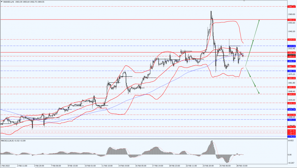 Yesterday (28th February 2022), the spot gold price maintained a shaky upward trend during the European session. The overall performance of gold prices remained very strong as they maintained near the $1,900 mark.