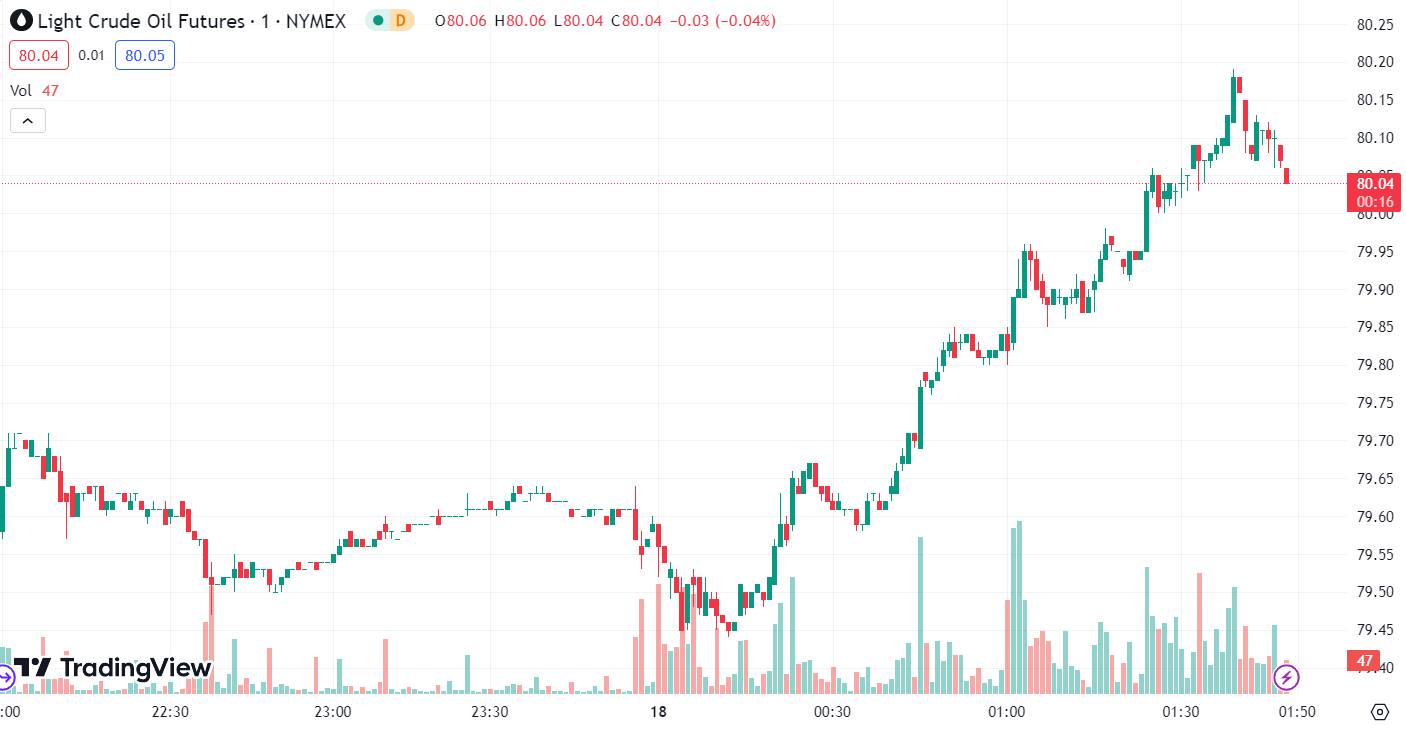 From a technical standpoint, oil prices found stability around the $79 level, marking a rebound and recovery. In the Asia-Europe sessions, the price saw consecutive gains, reaching near $80, and then entered a sideways trend.