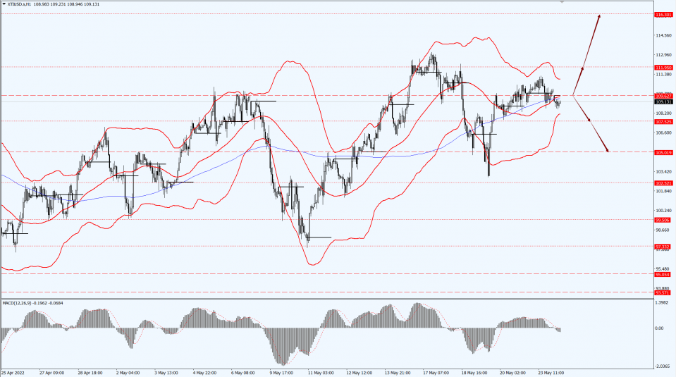 Oil prices focus on the 109.62-line today. If the oil price runs below the 109.62-line, then focus on the suppression strength of the two positions of 107.52 and 105.52. If the oil price runs above the 109.62-line, then pay attention to the support strength of the two positions of 111.95 and 116.30.