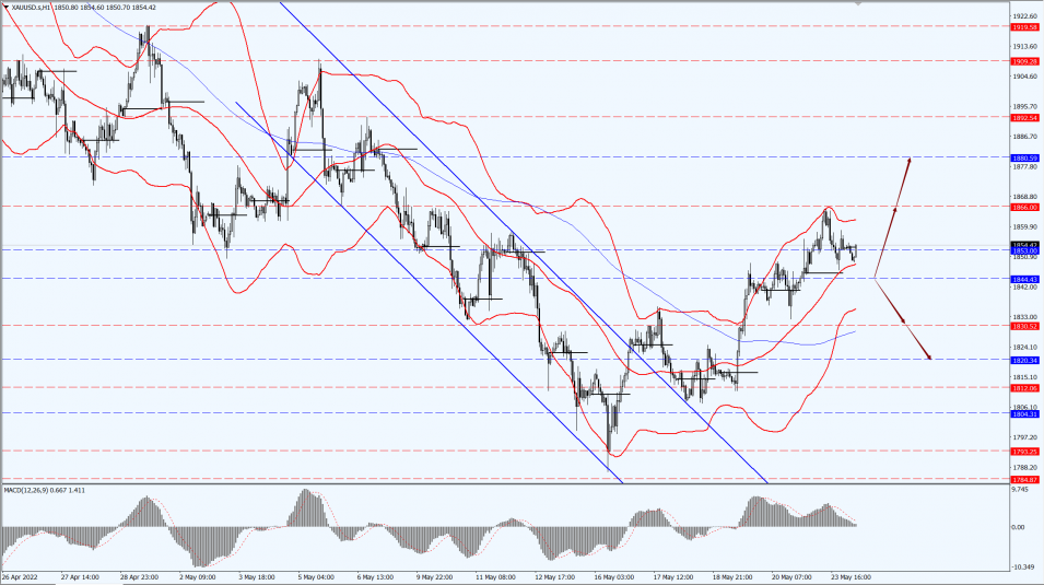 Gold pays attention to the 1844-line today. If the gold price runs steadily below the 1844-line, then it will pay attention to the support strength of the 1830 and 1820 positions. If the gold price breaks above the 1844-line, then pay attention to the suppression strength of the two positions of the 1866 and 1880.