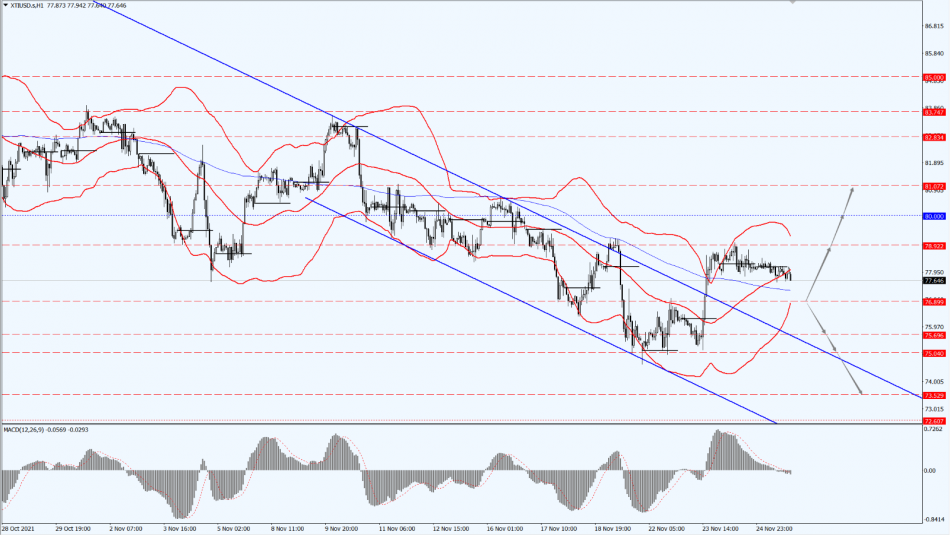 Today, oil prices are still paying attention to the 76.89-line. If oil prices run above the 76.89-line, then pay attention to the suppression at 78.92 and 80 in turn. If the oil price drops below 76.89, it will open up a further downside space. At that time, pay attention to the strength of the positions at 75.69 and 75.04.