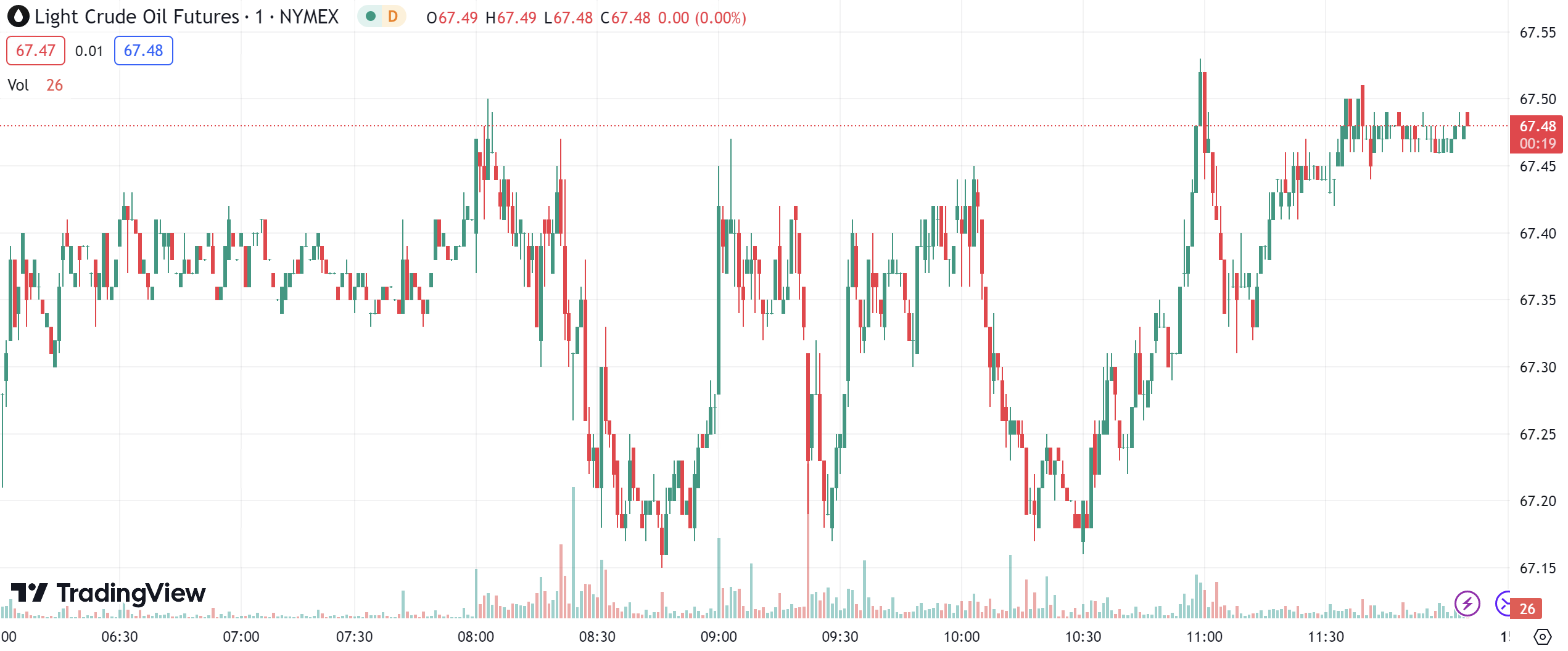 Crude oil opened today at USD 67.198 per barrel. Yesterday, it experienced a sharp decline, reaching a low of USD 66.783 per barrel and closing at USD 67.283 per barrel.