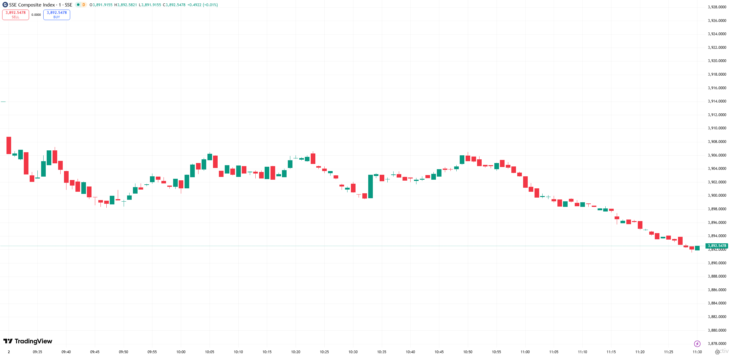 Hong Kong’s major indexes opened higher but reversed. Meituan −2 percent, JD.com and Bilibili −1 percent, Alibaba +1 percent.