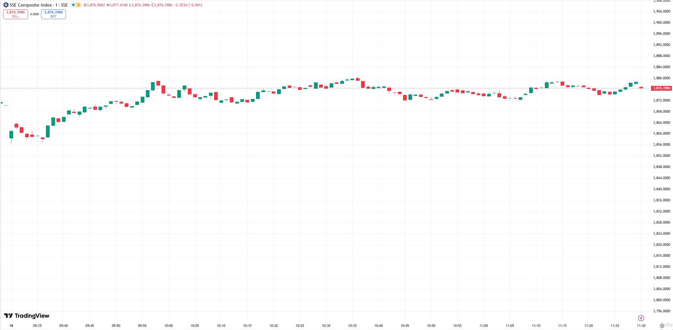 Mainland China indices showed mixed performance in early trading. The Shanghai Composite opened lower but rebounded, while the Shenzhen Component and ChiNext recovered briefly before turning lower again.