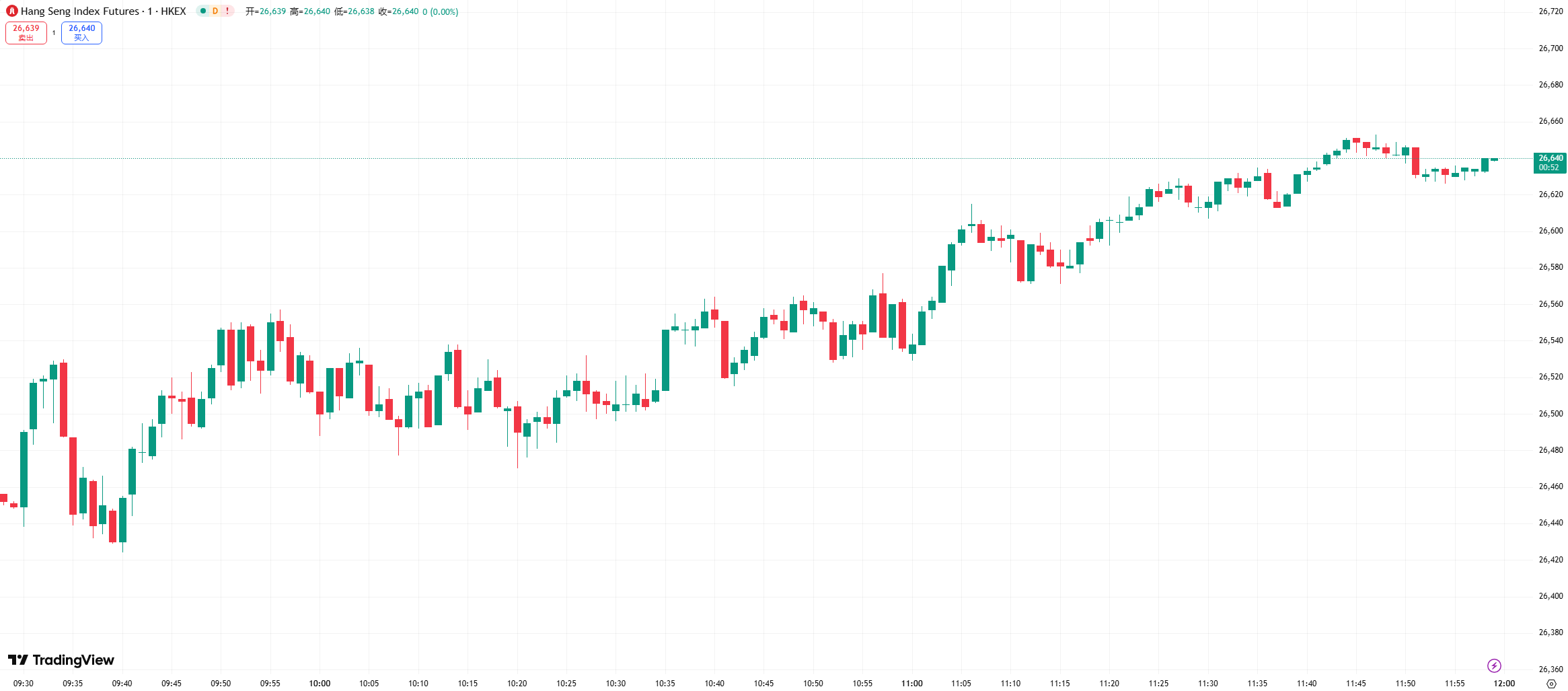 Mainland indexes rose broadly in the morning session. The Shanghai Composite added 0.16%, the Shenzhen Component gained 1.14%, and the ChiNext jumped 2.22%. Around 2,000 stocks advanced across the market, with half-day turnover at RMB 1.56 trillion, up RMB 135.5 billion from the previous session.
