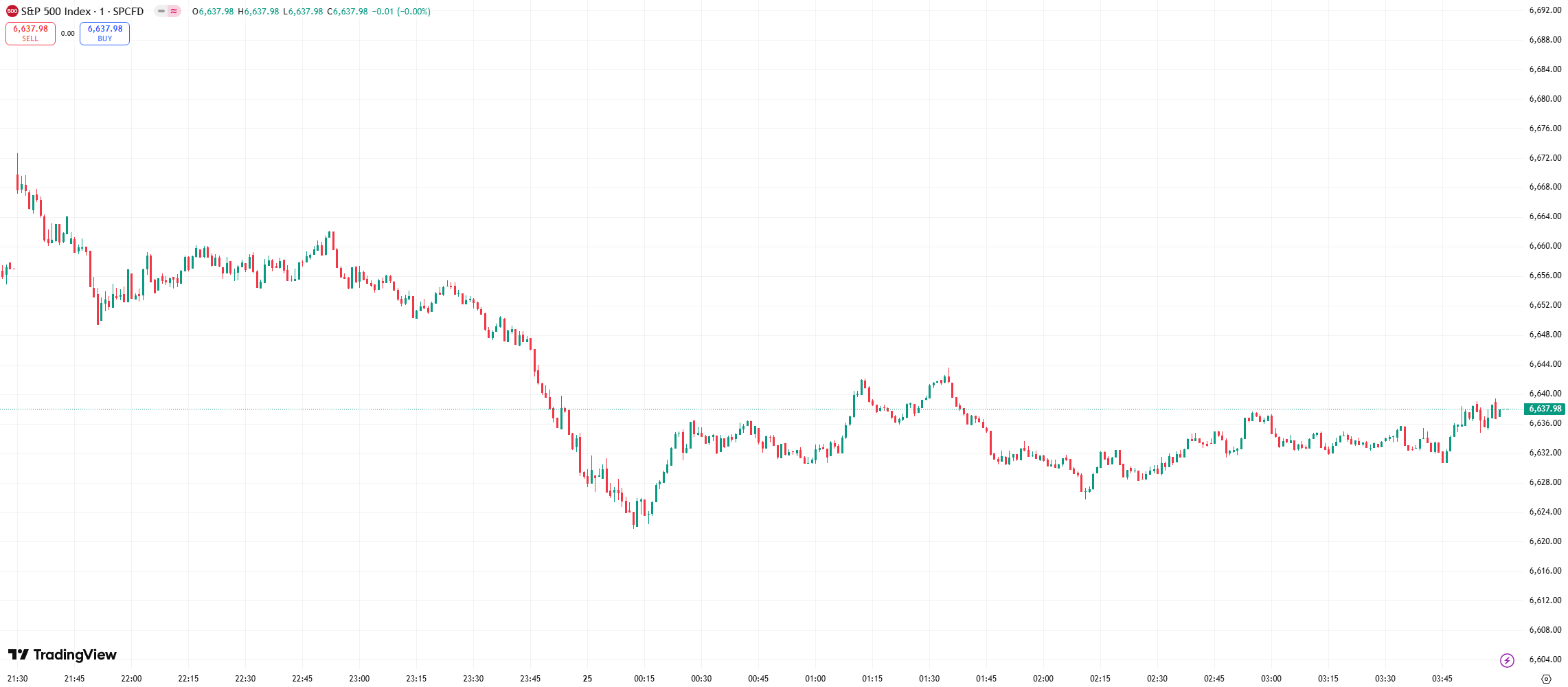 - S&P 500: –18.95 (–0.28%) at 6,637.97
