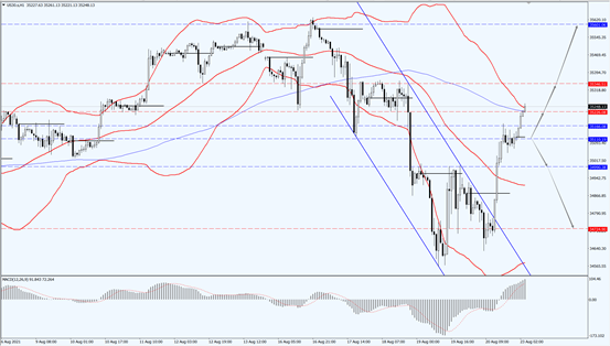 今日关注 35110 一线,在 35110 一线上方应以顺势看多的思路为主,上方关注 35346 一线的压制力度;一旦道指力度跌破 35110 ,才有打开进一步下行空间的可能,届时关注 34990 一线的支撑力度。