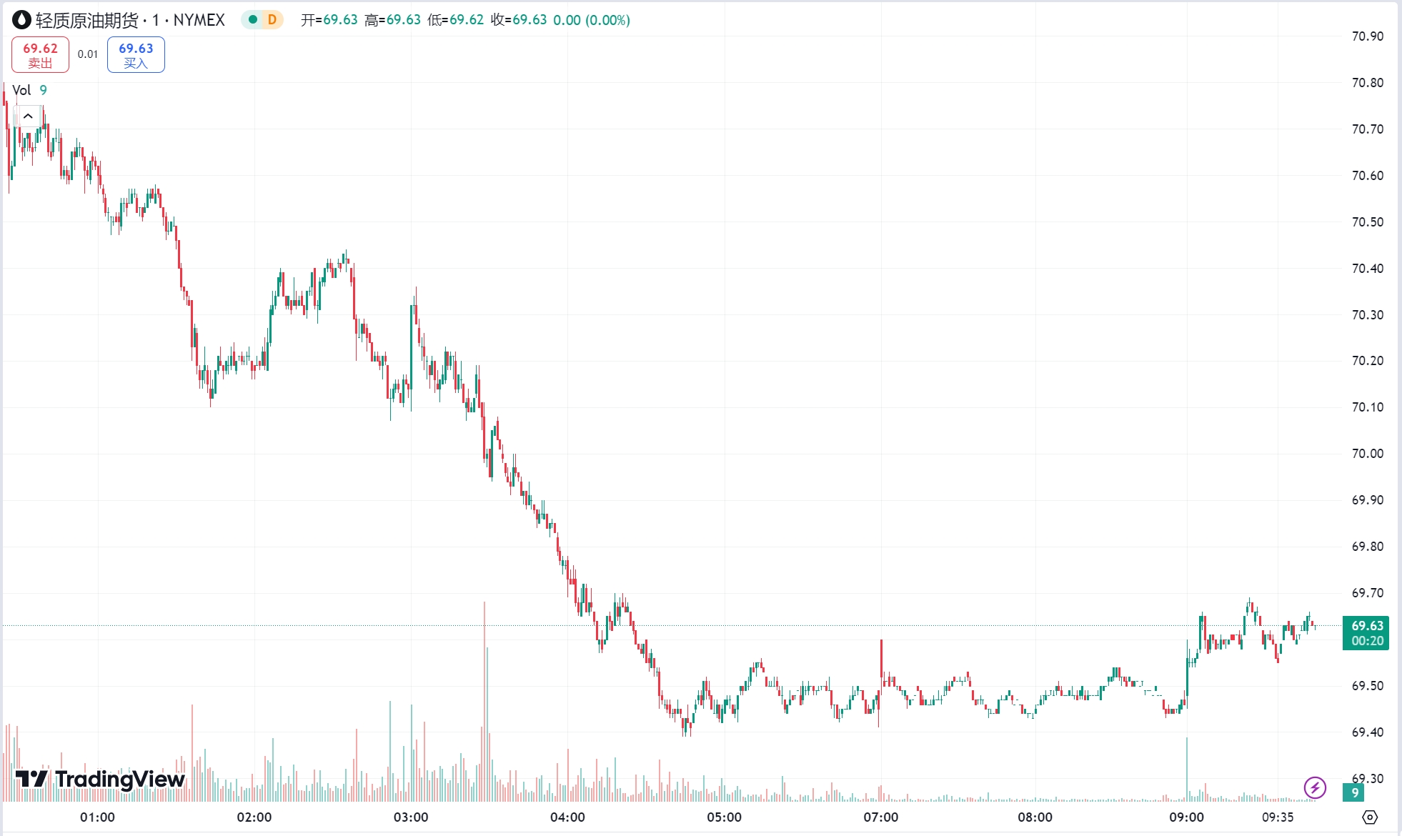 技术面上,油价昨日先涨后跌,亚欧盘价格依托 69.6 一线支撑小幅震荡回升,午后欧盘冲高突破 70 关口延续反弹走势,晚间美盘加速上行刺破 70.8 关口承压回落迅速走跌,最终凌晨价格形成过山车式震荡回落重回 69.5 关口报收冲高回落吊颈中阴,整体油价短线延续多空宽幅震荡区间。