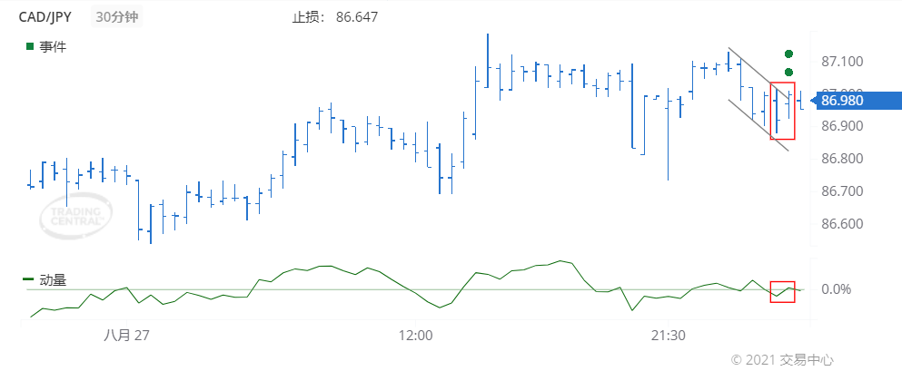 动量摆动指数于2021年 8月 30日(GMT时间02:30)向上穿越0,此信号表明新的加速上涨趋势已经出现。