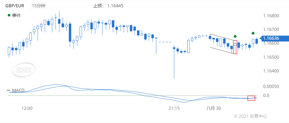 2021年 8月 30日(GMT时间01:30)我们在15分钟图表上发现称为锤形线的形态,这暗示长达12小时前景是利好的。
