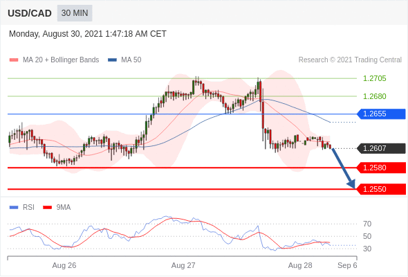 在 1.2655 之下,看跌,目标价位为 1.2580 ,然后为 1.2550 。