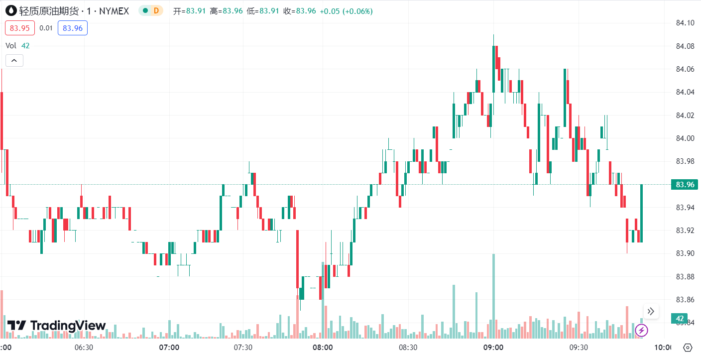 市场预期美国和中国的经济增长将提振需求,调查显示 3 月 OPEC 石油产量小幅下降,而且俄罗斯炼油厂遭到袭击也增加供给压力,原油价格上涨,创五个月新高。WTI 原油盘中一度向上触及 84 美元/桶,日内涨超 1%,续刷去年 10 月以来新高,最终收涨 1.03%,报 83.91 美元/桶;布伦特原油收涨 0.94%,报 87.74 美元/桶。