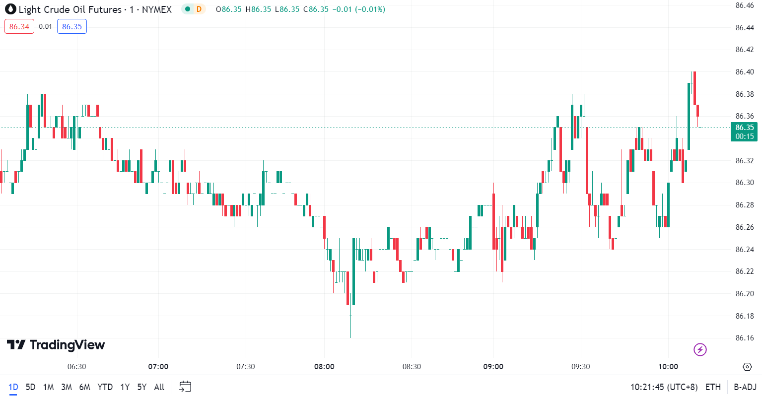美原油窄幅震荡,目前交投于 86.22 美元/桶附近,油价周三收涨逾 1%,此前哈马斯一位领导人的三个儿子在以色列对加沙地带的空袭中丧生,加剧了人们对停火谈判可能陷入僵局的担忧,不过,美国 CPI 强于预期帮助美元大涨,而且 EIA 原油库存大幅增加,仍需警惕油价的回调风险。