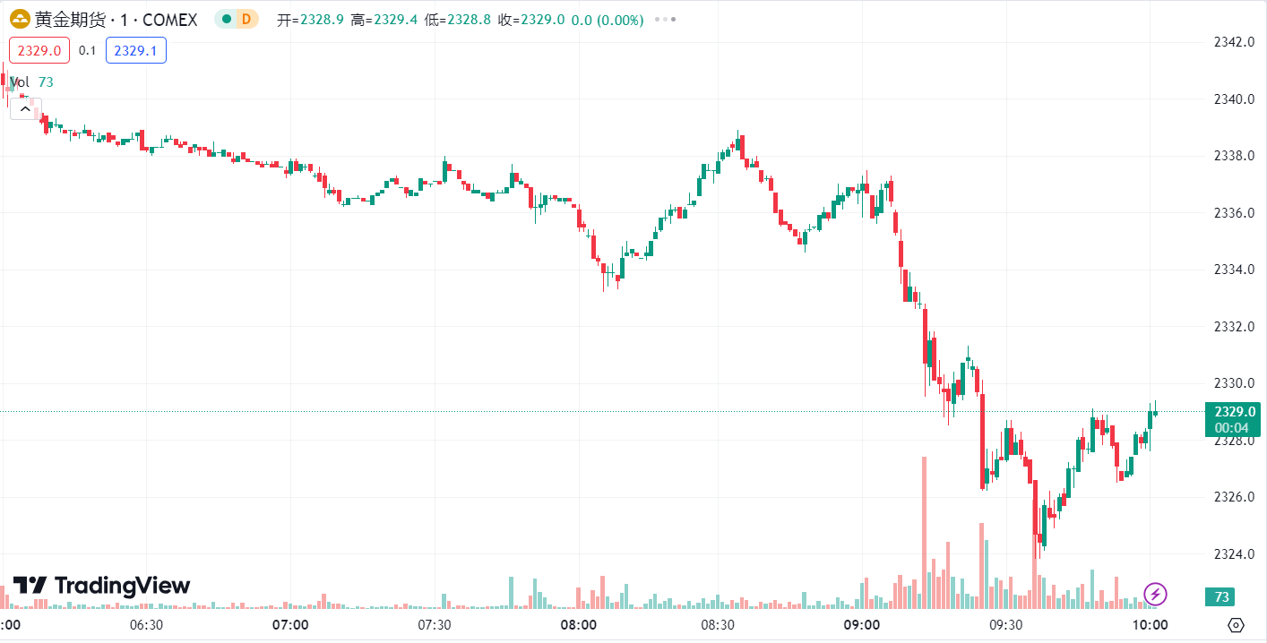 周三,金价冲高受阻,因美国 5 月 CPI 数据显示美国通胀增速放缓,金价一度飙升近 30 美元,但美联储利率决议维持利率不变,暗示今年将仅降息一次,美联储主席鲍威尔的讲话也不如预期的鸽派,金价回吐了大部分涨幅。现货黄金连续第三个交易日上涨,一度触及 2340 大关,最终收涨 0.27%,报 2322.50 美元/盎司。