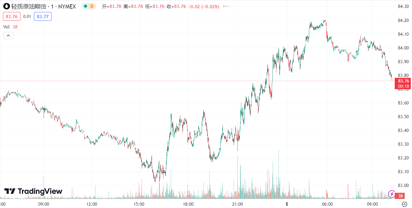 周四,随着交易员们继续消化美国原油库存下降的数据以及中东地缘政治局势,油价连续第二个交易日收涨。WTI 原油收涨 0.57%,报 84.04 美元/桶;布伦特原油盘中触及 4 月底以来的最高点,最终收涨 0.56%,报 87.52 美元/桶。
