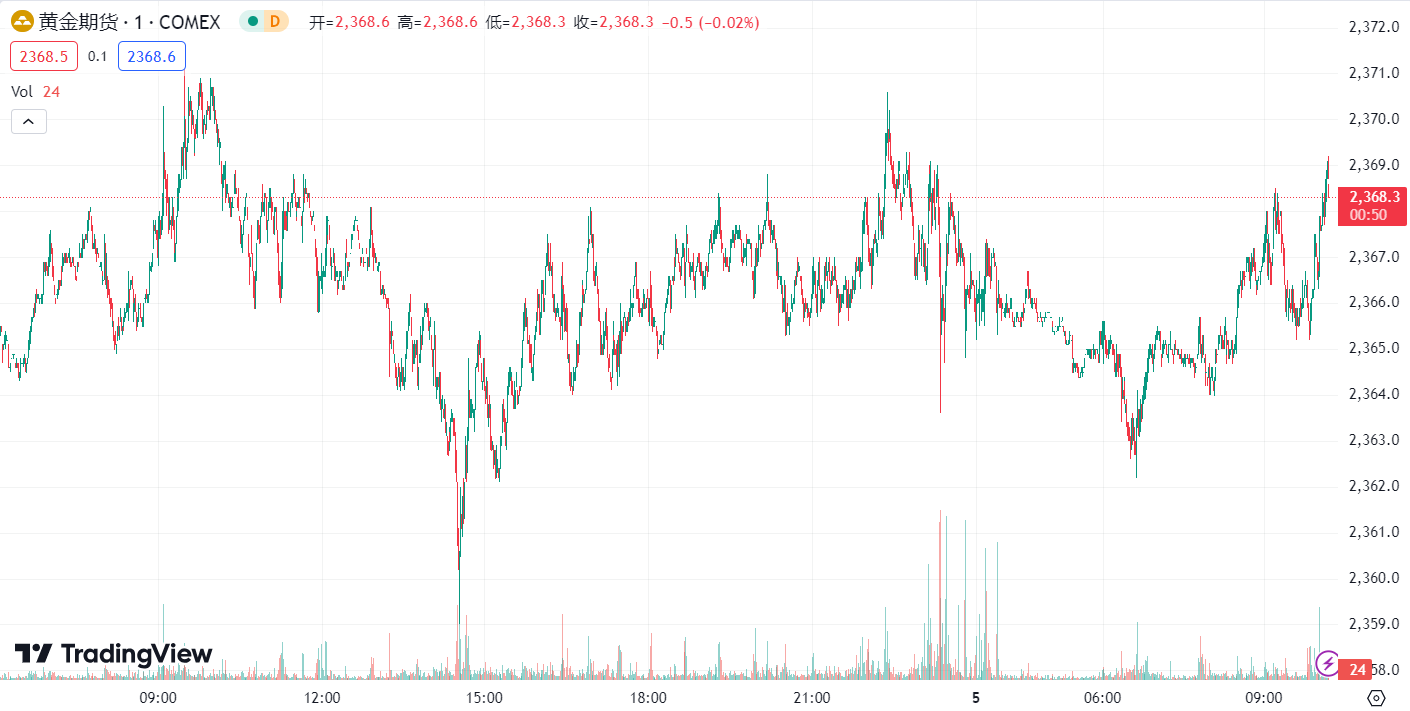 周四,由于最新出炉的美国 5 月 ADP 和初请失业金等就业数据表现不佳,市场普遍预计美国就业市场可能会放缓,这有望在数据出炉前,给金价提供支撑,但周四是美国独立日,金价上一交易日提前休市,整体维持窄幅震荡走势。现货黄金在非农到来之际持稳,盘中多次挑战 2360 美元关口,最终收涨 0.06%,报 2357.45 美元/盎司。